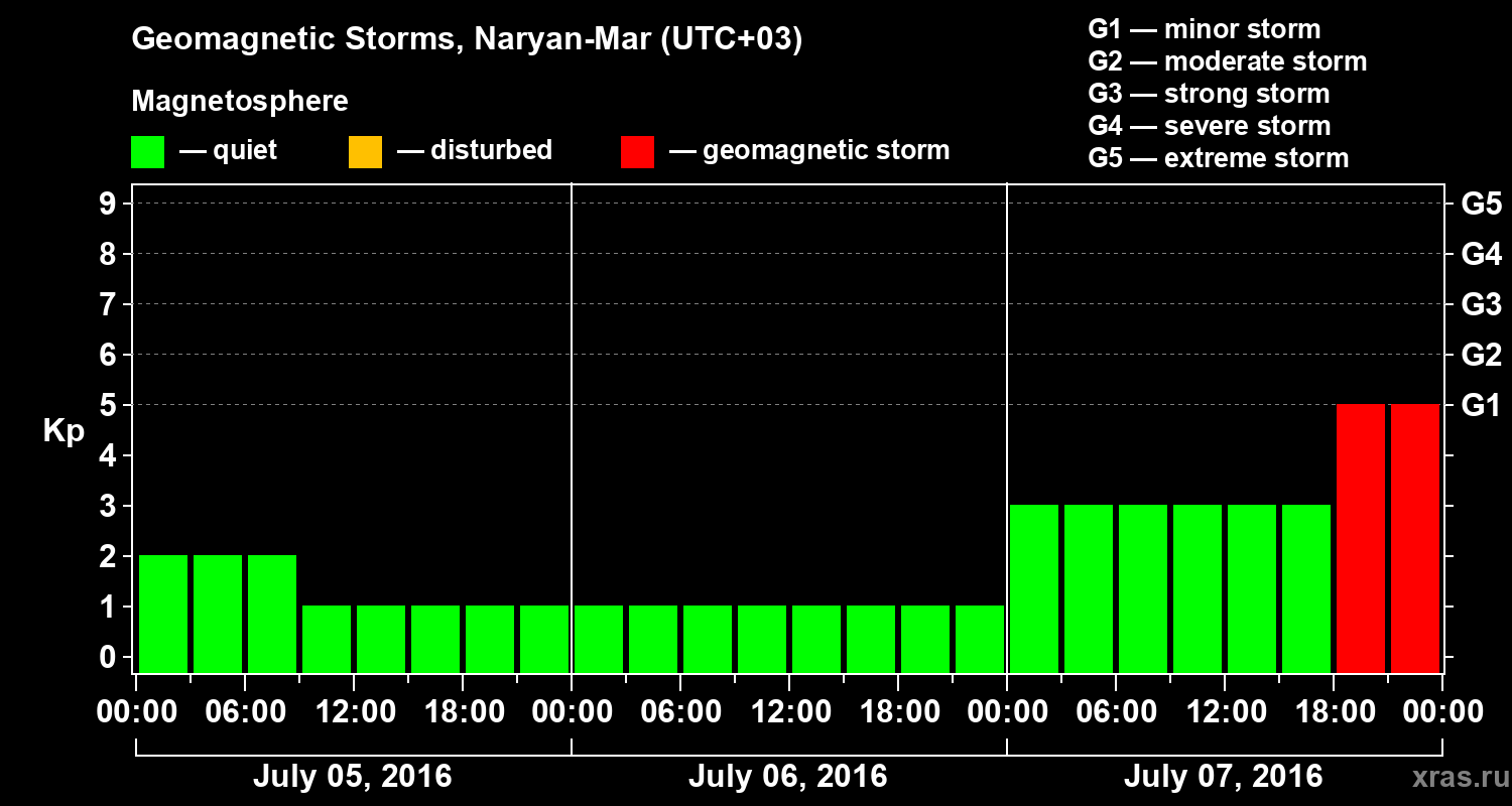 Geomagnetic storms in Naryan-Mar — Jul 07, 2016