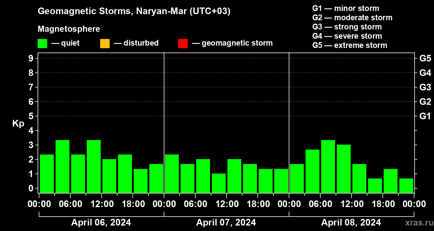Geomagnetic storms in Naryan-Mar — Apr 08, 2024