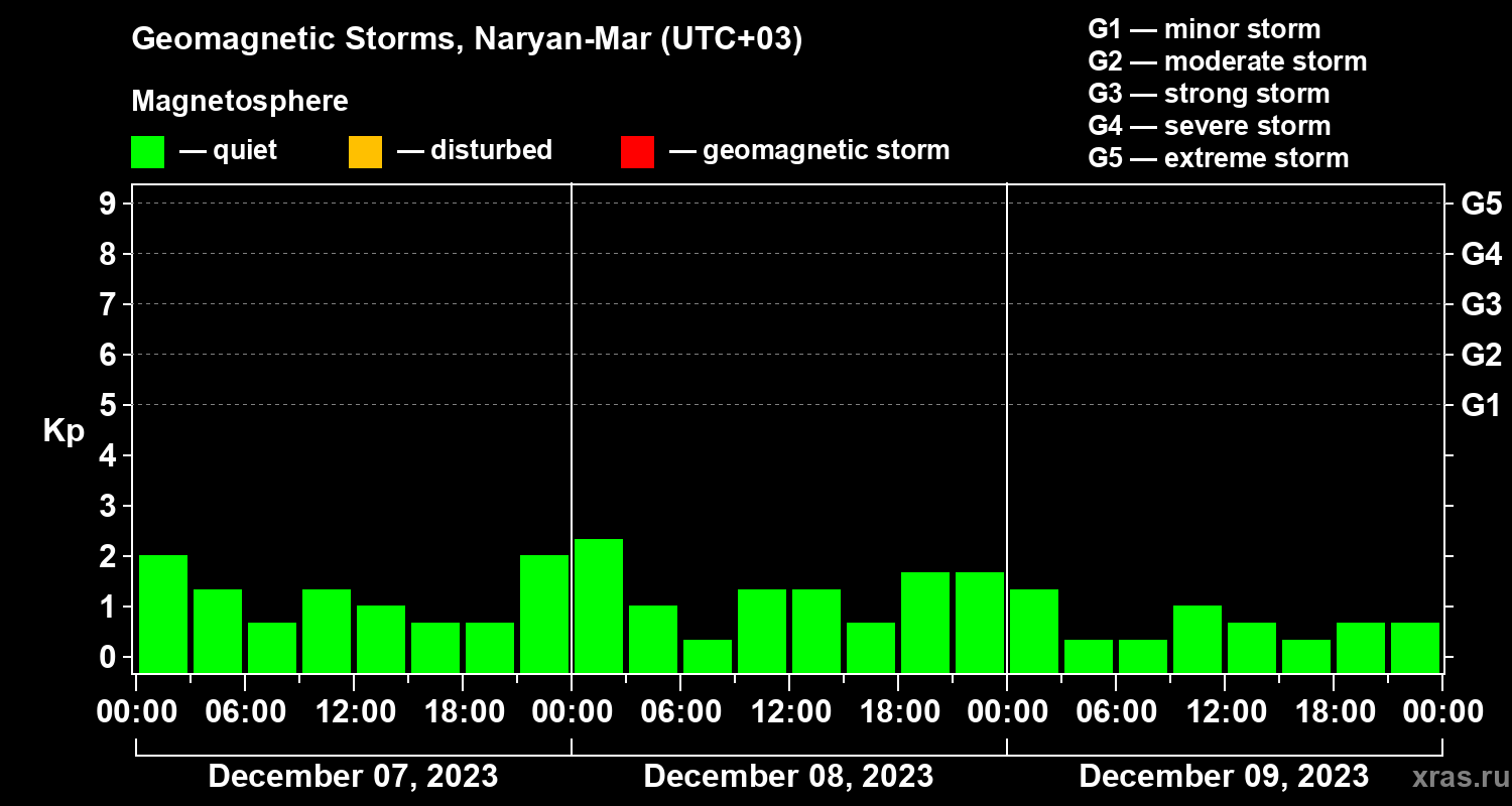 Geomagnetic storms in Naryan-Mar on Dec 09, 2023