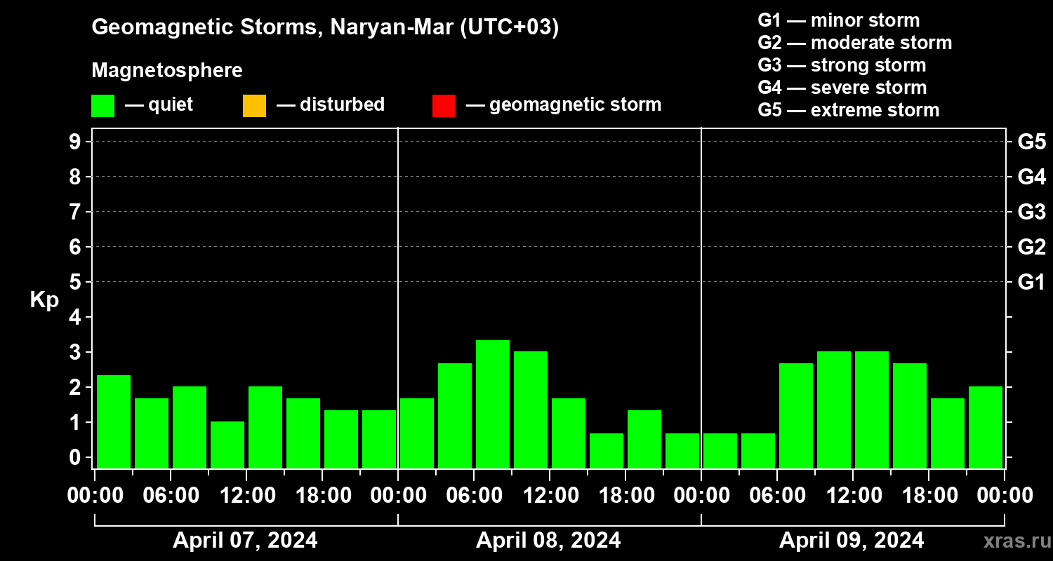 Geomagnetic storms in Naryan-Mar — Apr 09, 2024