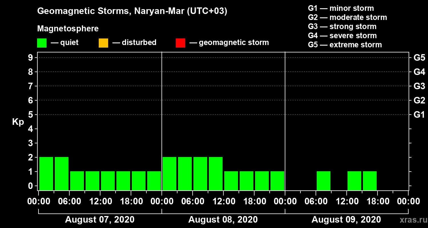 Geomagnetic storms in Naryan-Mar — Aug 09, 2020