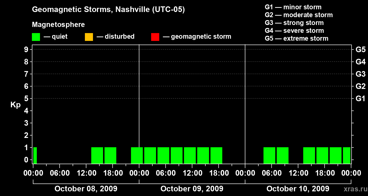 Geomagnetic storms in Nashville on Oct 10, 2009