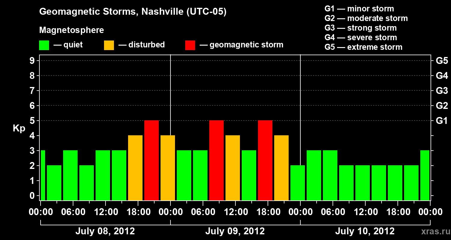 Geomagnetic storms in Nashville in July 2012
