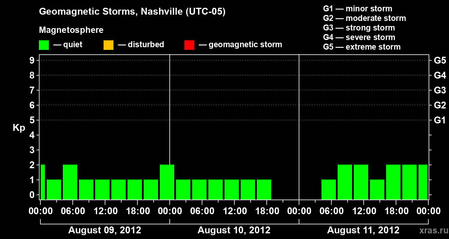Geomagnetic storms in Nashville in August 2012
