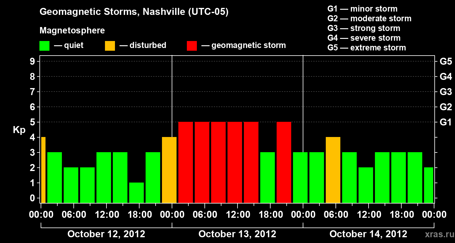 Geomagnetic storms in Nashville in October 2012