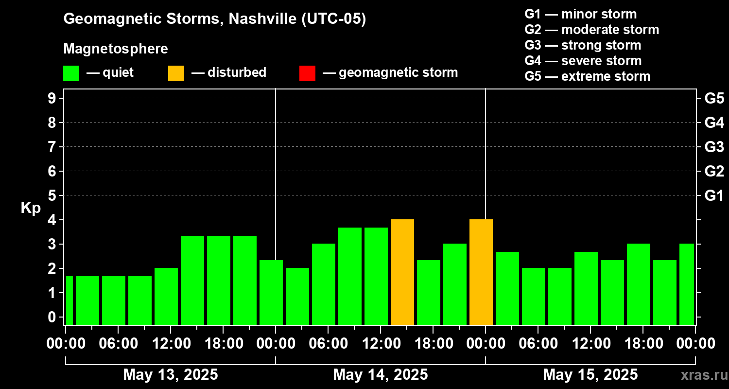 Geomagnetic storms in Nashville — May 15, 2025