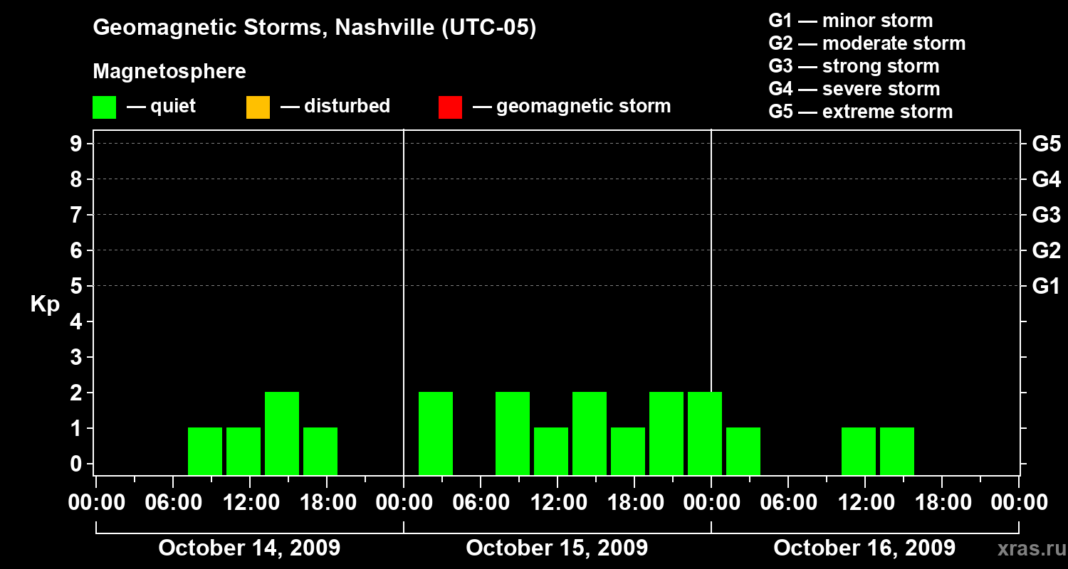 Geomagnetic storms in Nashville on Oct 16, 2009