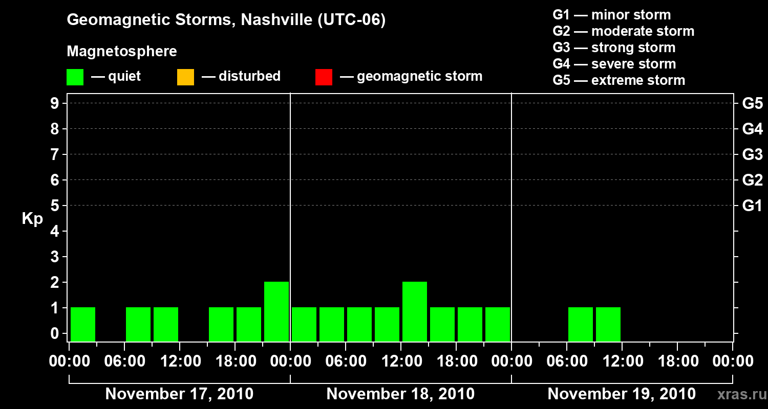 Geomagnetic storms in Nashville on Nov 19, 2010