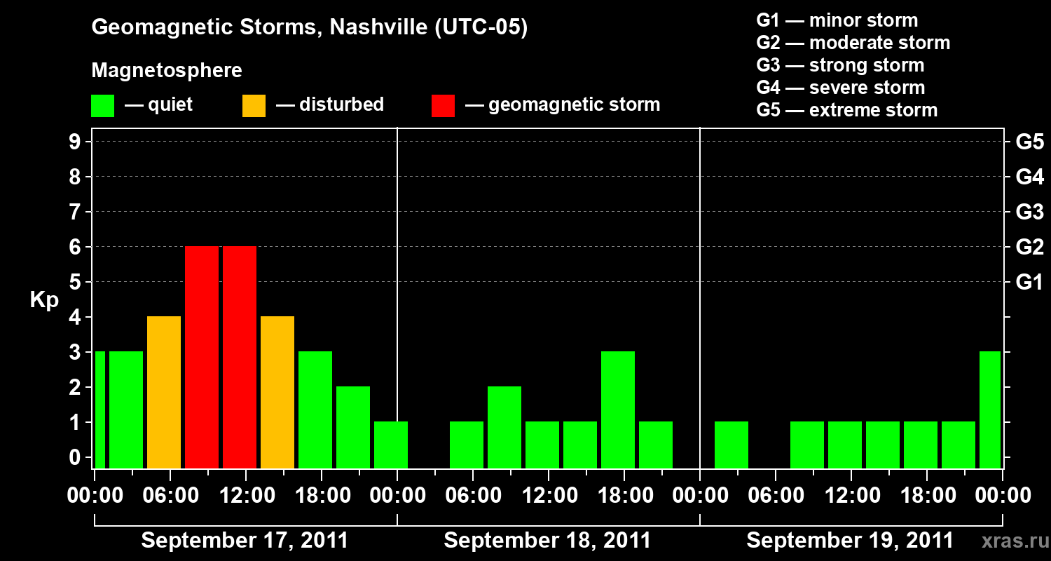 Geomagnetic storms in Nashville in September 2011