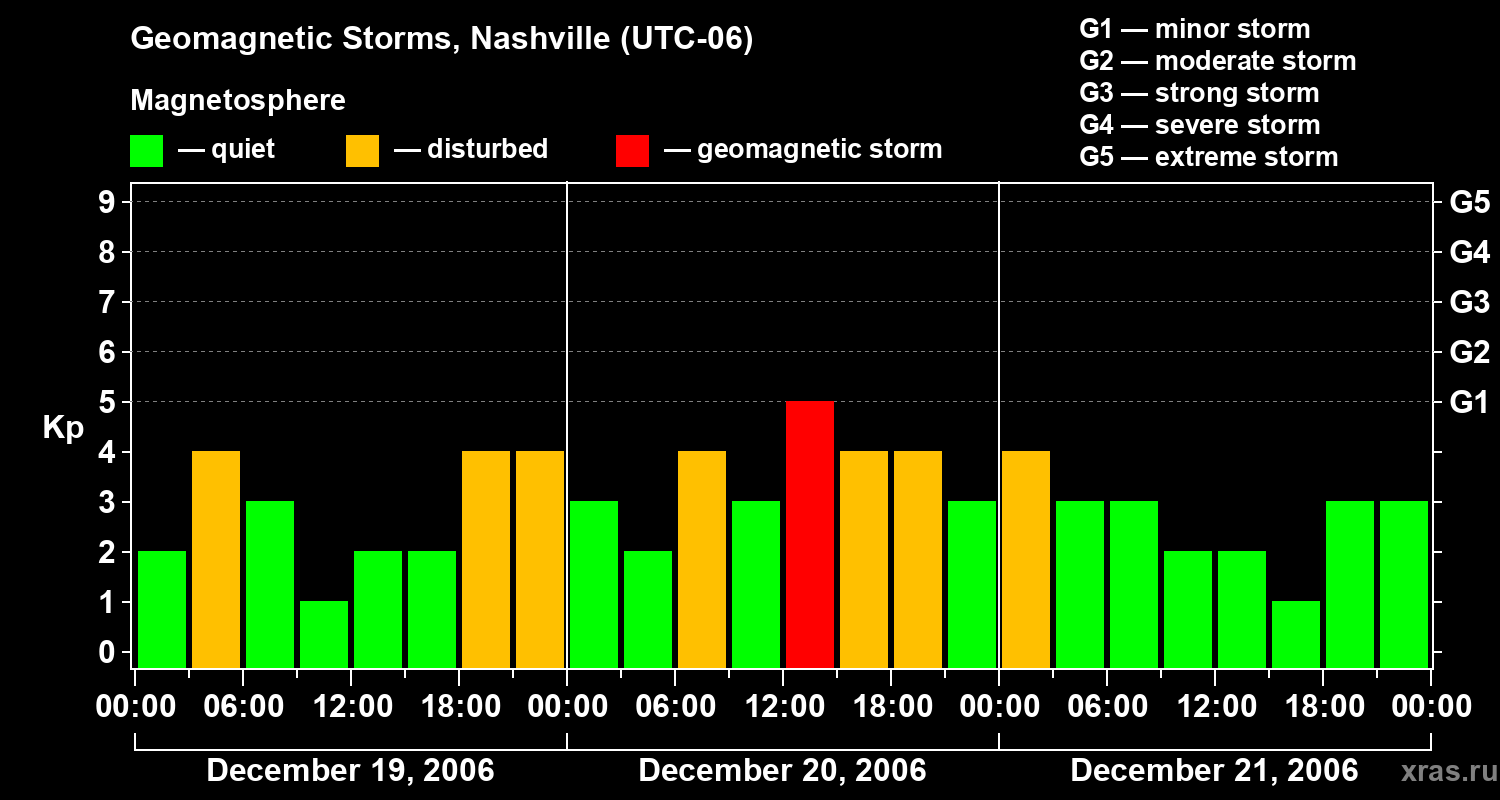 Geomagnetic storms in Nashville on Dec 21, 2006