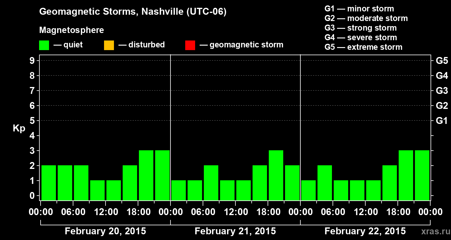 Geomagnetic storms in Nashville on Feb 22, 2015