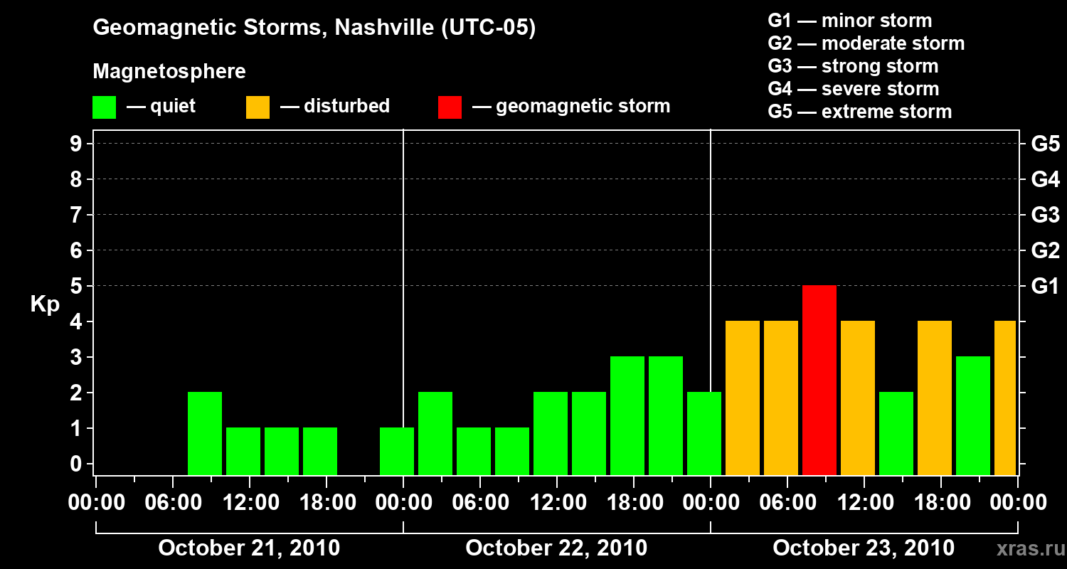 Geomagnetic storms in Nashville — Oct 23, 2010
