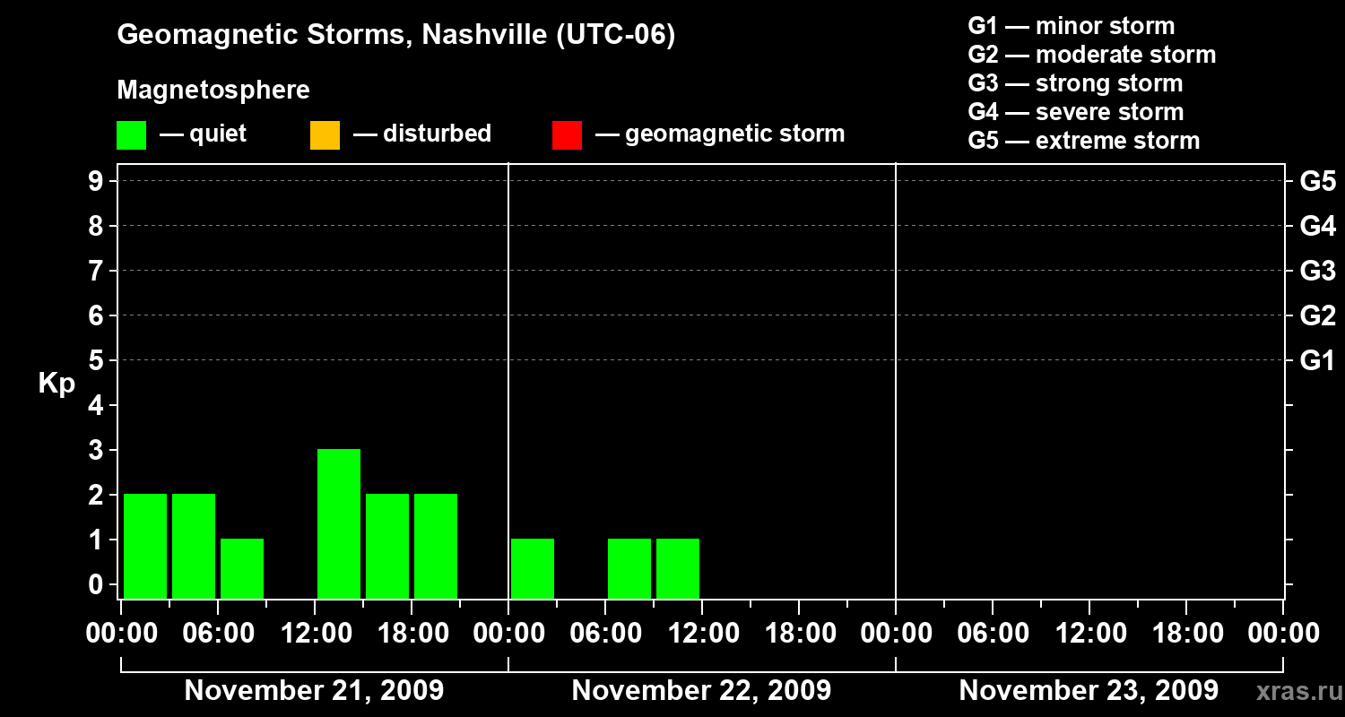 Geomagnetic storms in Nashville on Nov 23, 2009