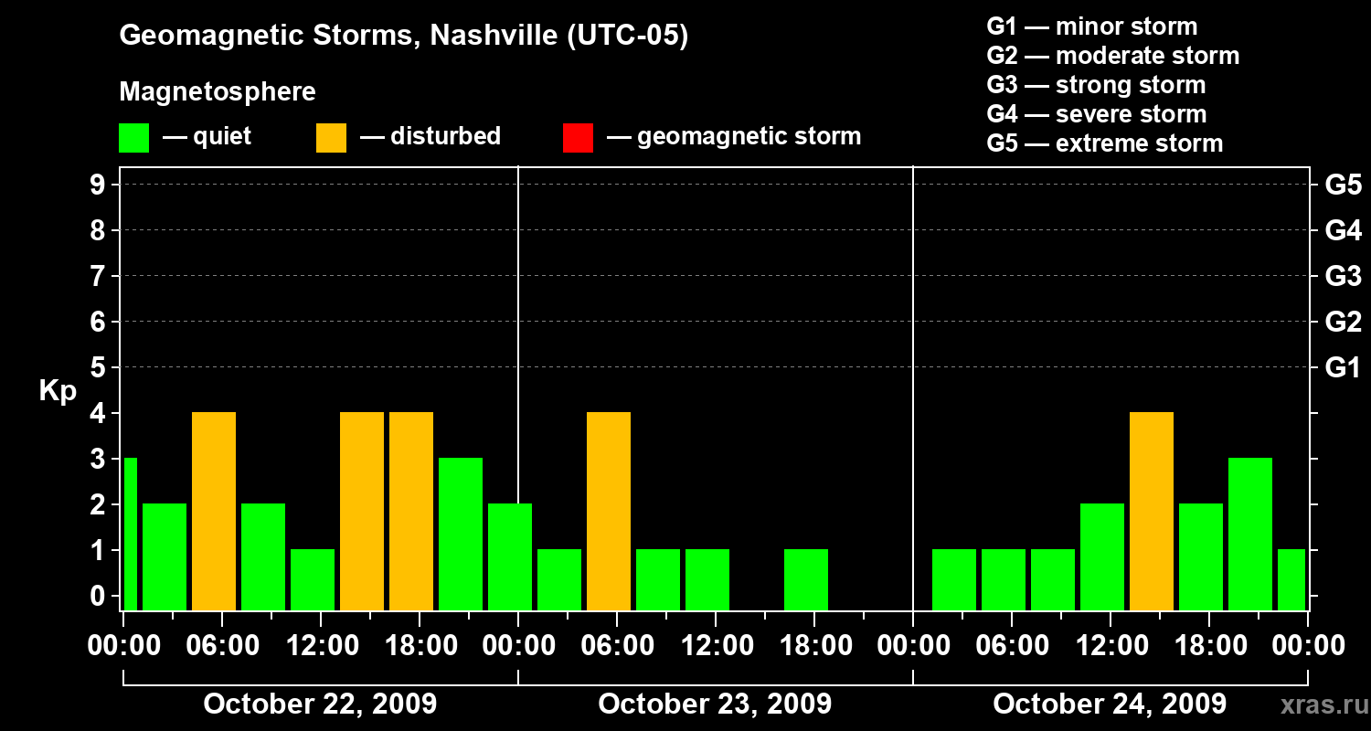 Geomagnetic storms in Nashville — Oct 24, 2009