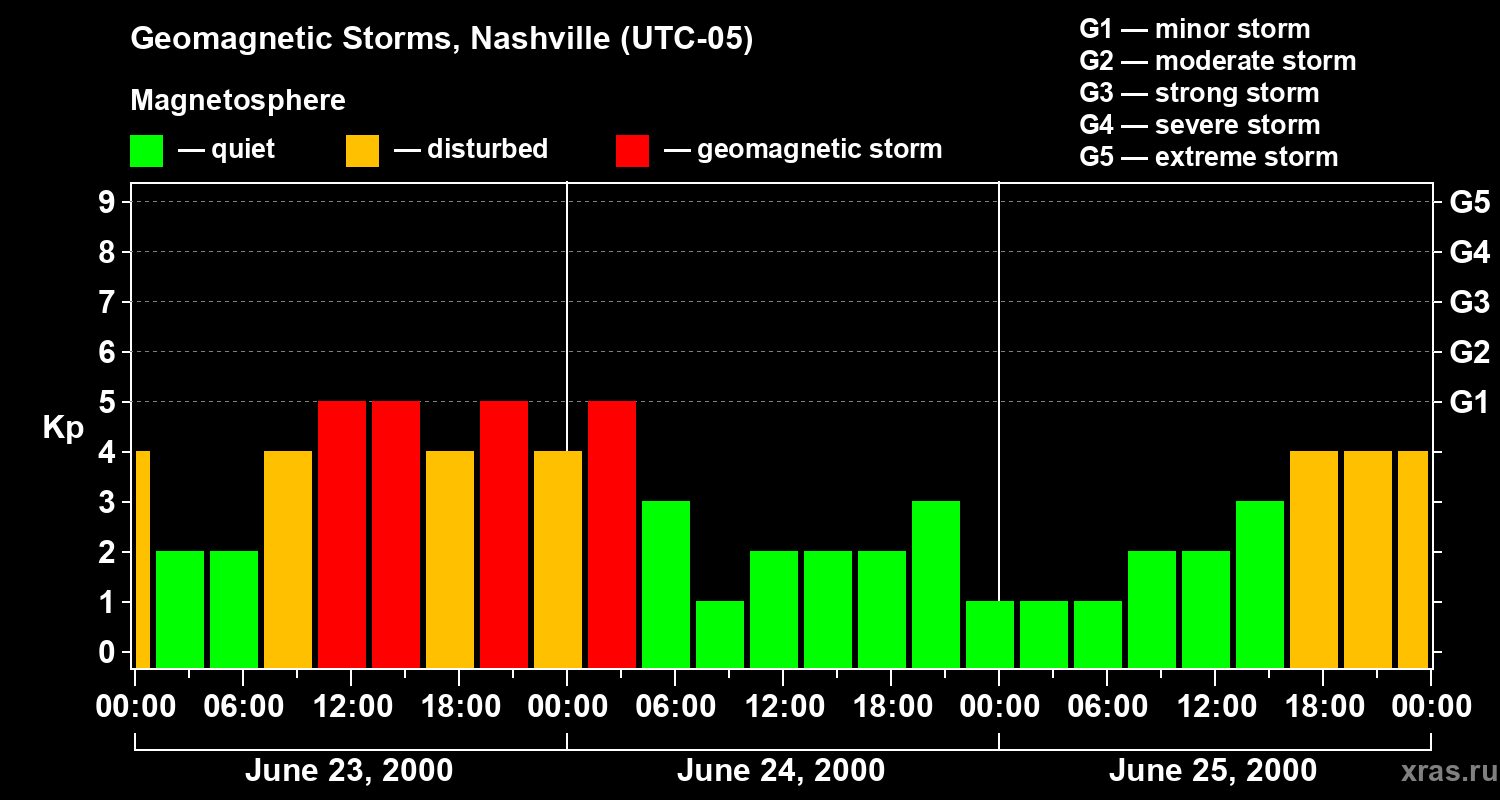 Geomagnetic storms in Nashville on Jun 25, 2000