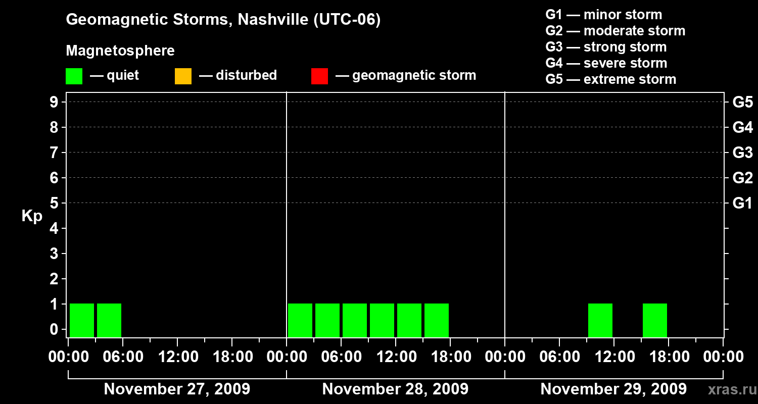 Geomagnetic storms in Nashville on Nov 29, 2009