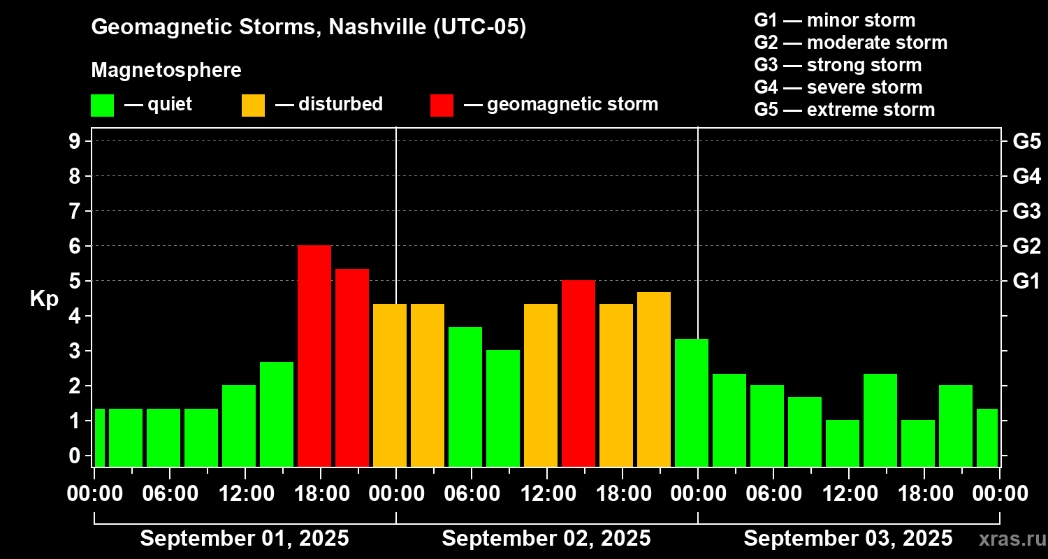 Geomagnetic storms in Nashville — Sep 03, 2025
