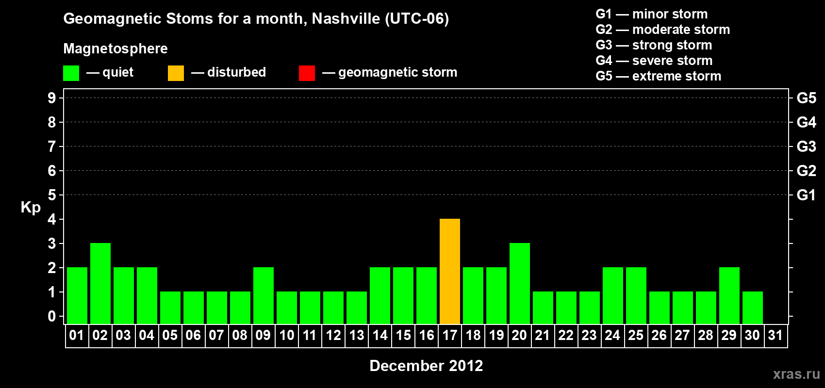 Geomagnetic storms in Nashville — Dec 31, 2012
