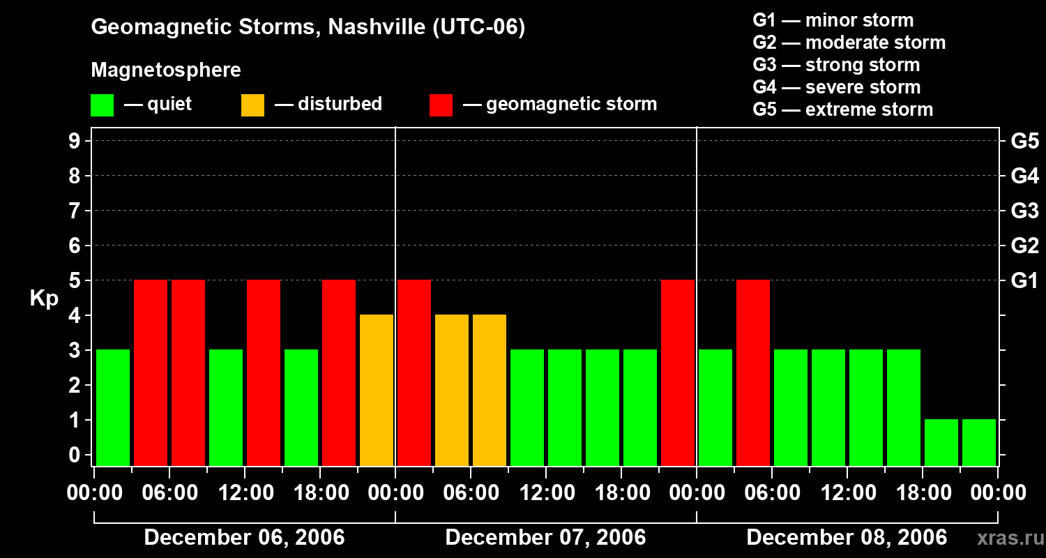 Geomagnetic storms in Nashville on Dec 08, 2006