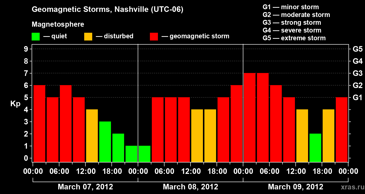 Geomagnetic storms in Nashville — Mar 09, 2012