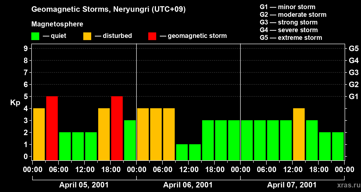 Geomagnetic storms in Neryungri — Apr 07, 2001