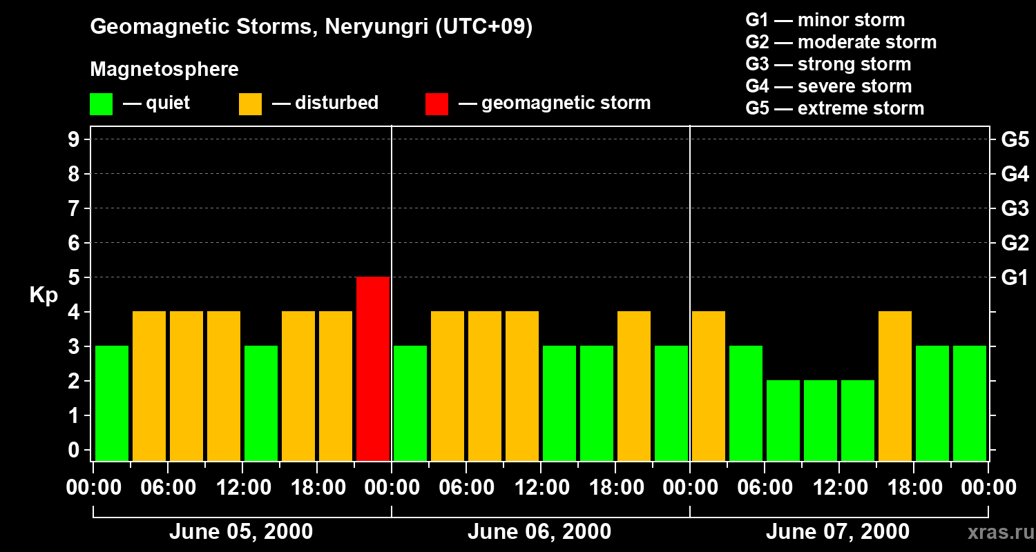 Geomagnetic storms in Neryungri — Jun 07, 2000