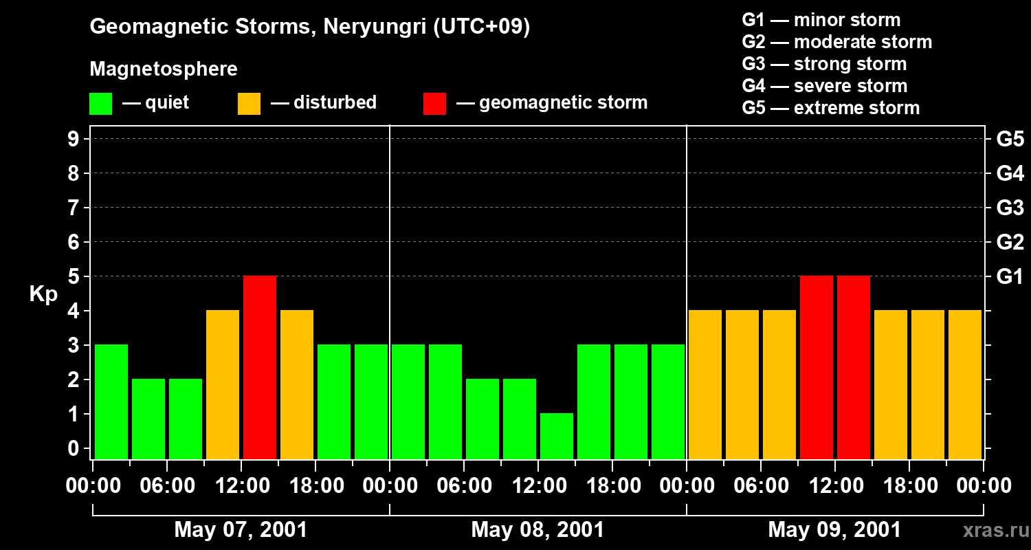 Geomagnetic storms in Neryungri on May 09, 2001