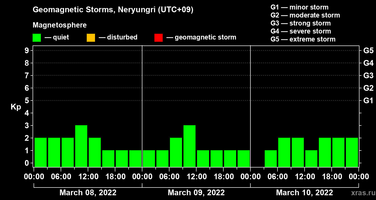 Geomagnetic storms in Neryungri — Mar 10, 2022