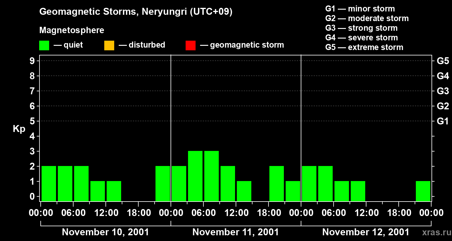 Geomagnetic storms in Neryungri — Nov 12, 2001