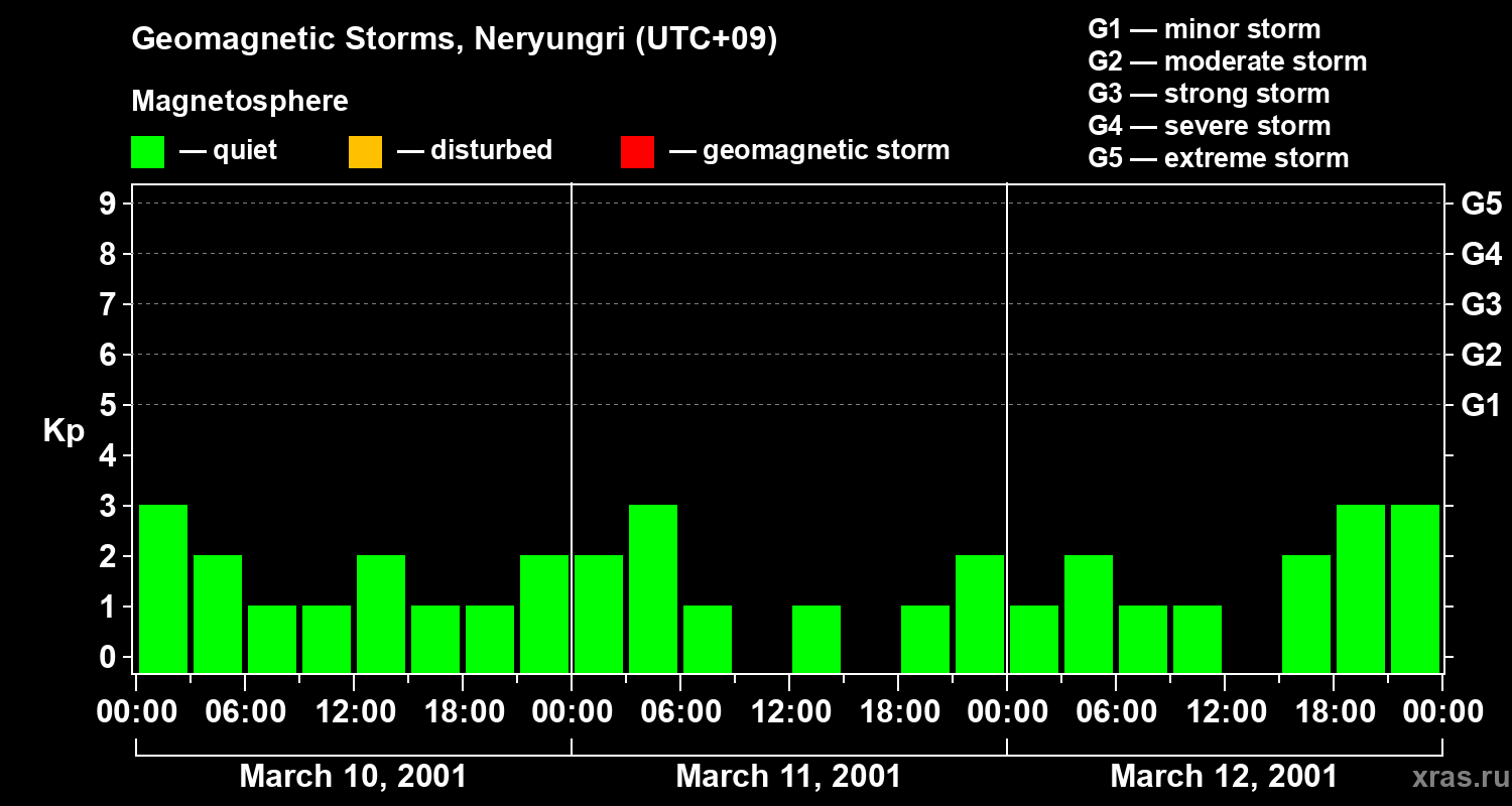 Geomagnetic storms in Neryungri — Mar 12, 2001