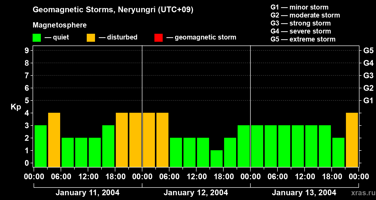 Geomagnetic storms in Neryungri — Jan 13, 2004