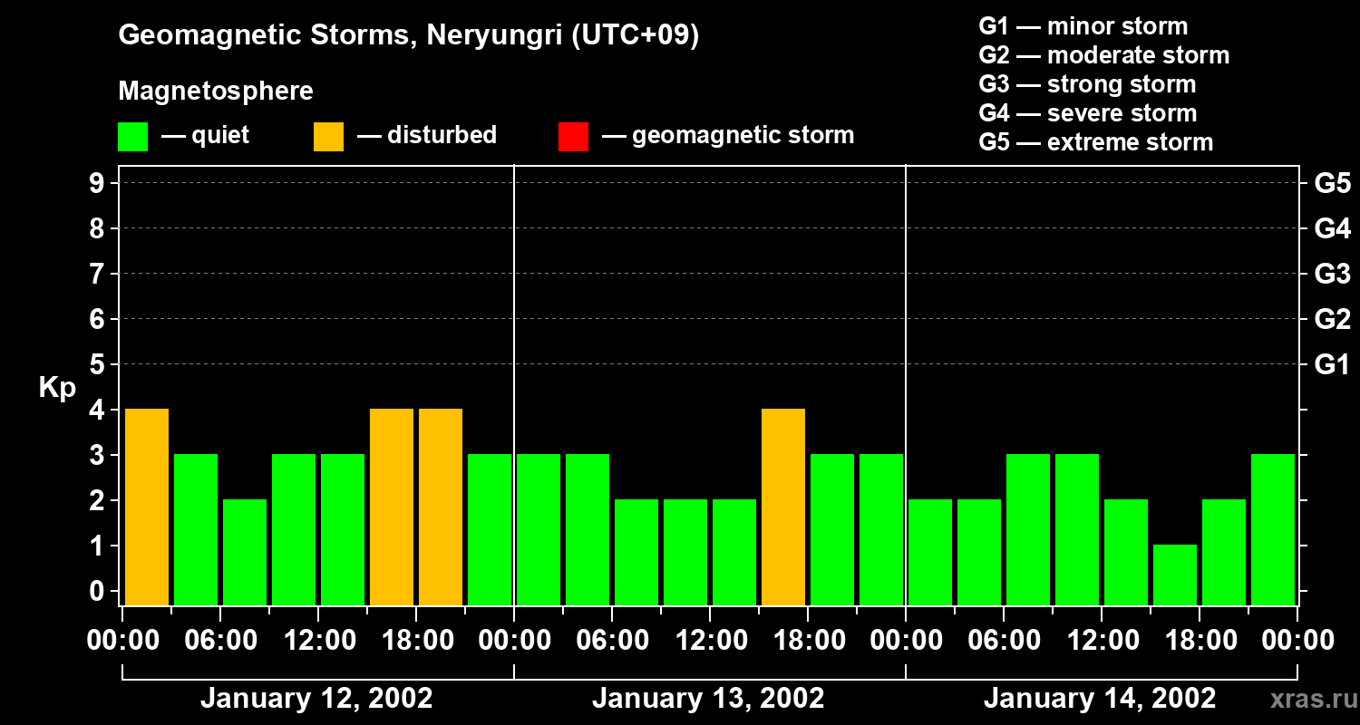 Geomagnetic storms in Neryungri — Jan 14, 2002