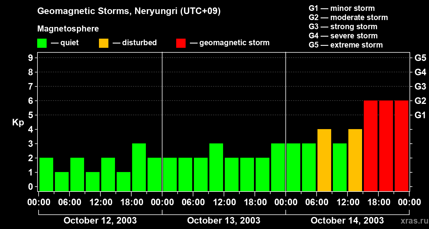 Geomagnetic storms in Neryungri — Oct 14, 2003