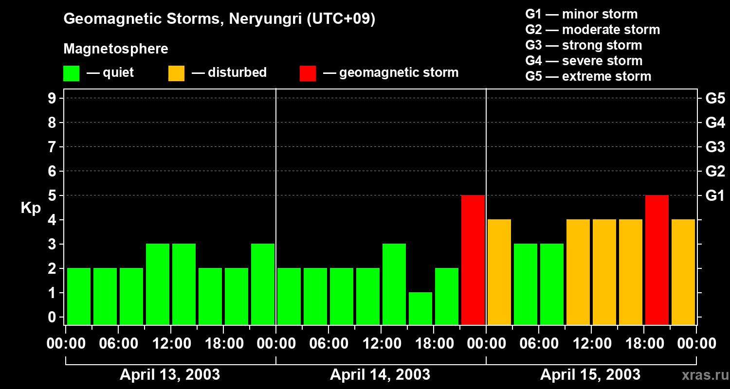 Geomagnetic storms in Neryungri — Apr 15, 2003