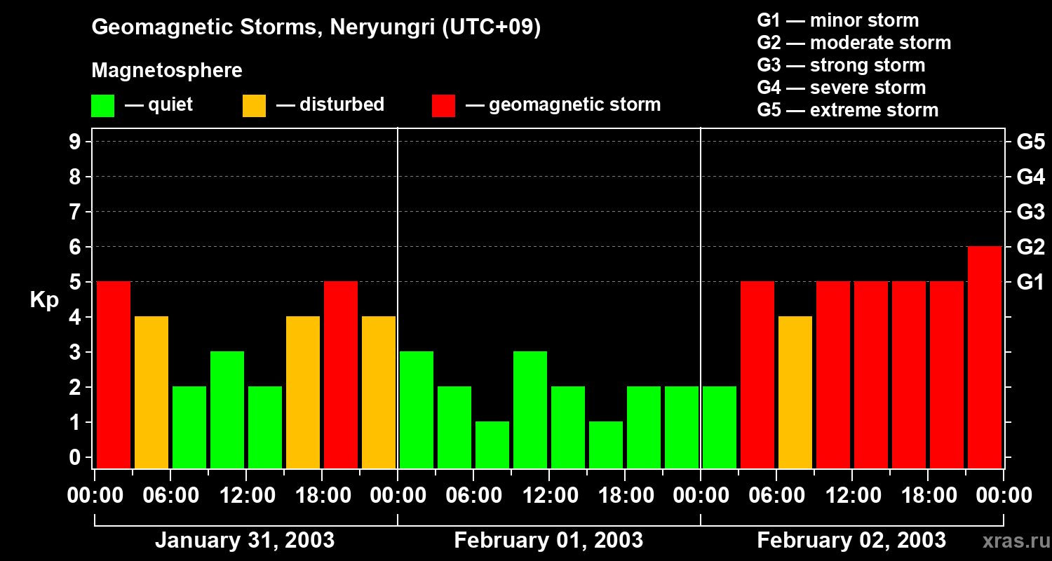 Geomagnetic storms in Neryungri — Feb 02, 2003