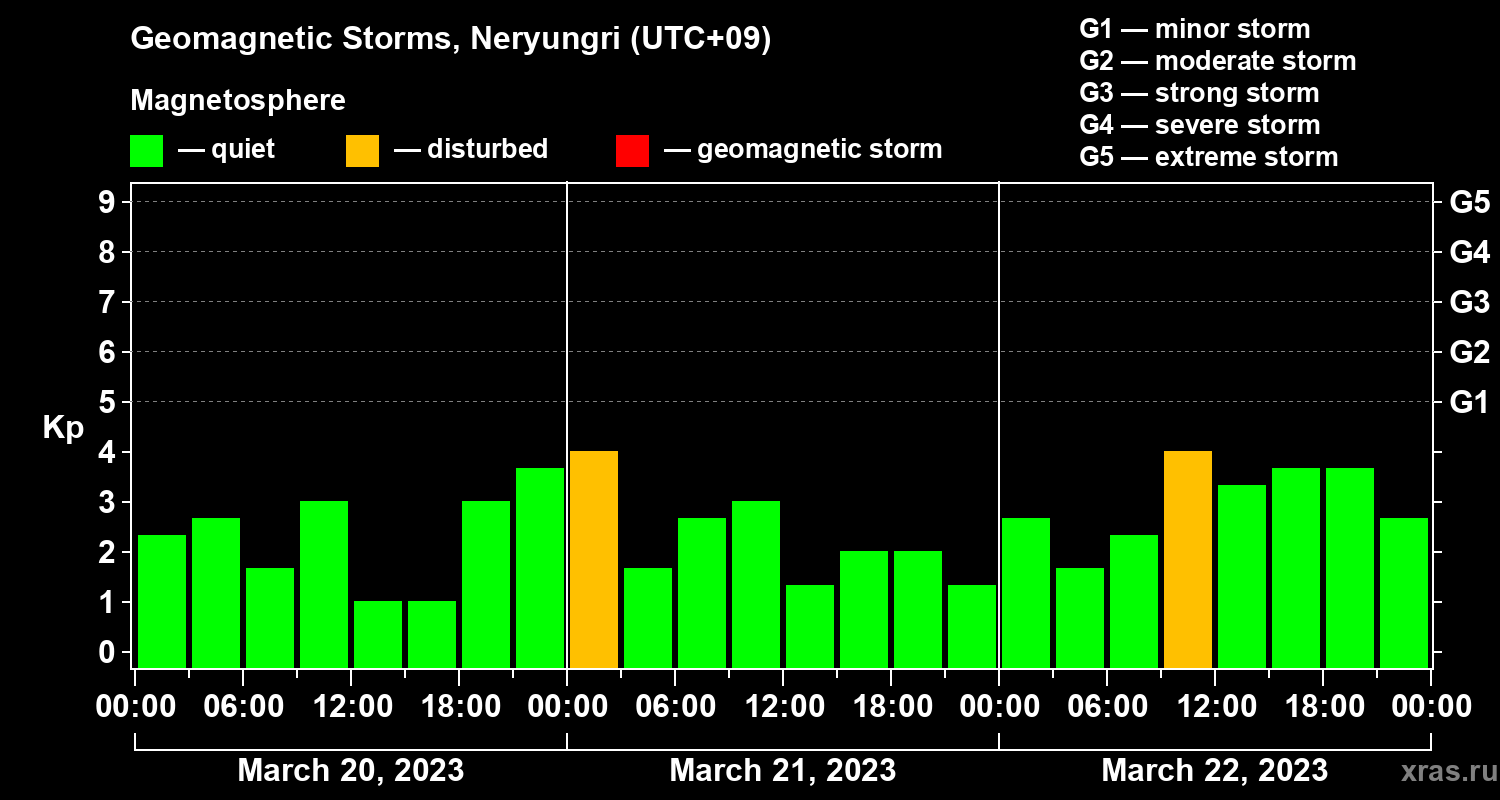 Geomagnetic storms in Neryungri — Mar 22, 2023