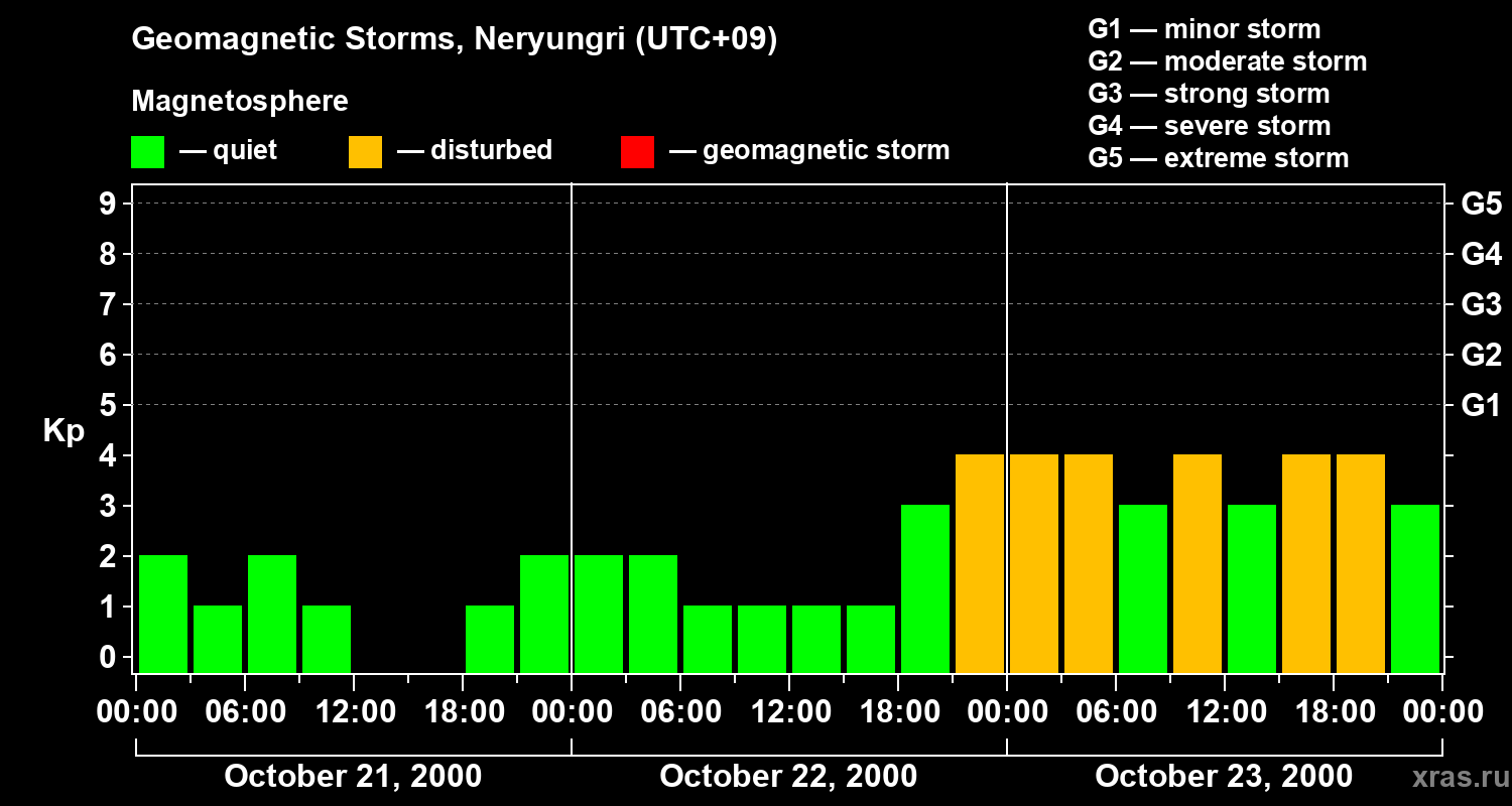 Geomagnetic storms in Neryungri — Oct 23, 2000