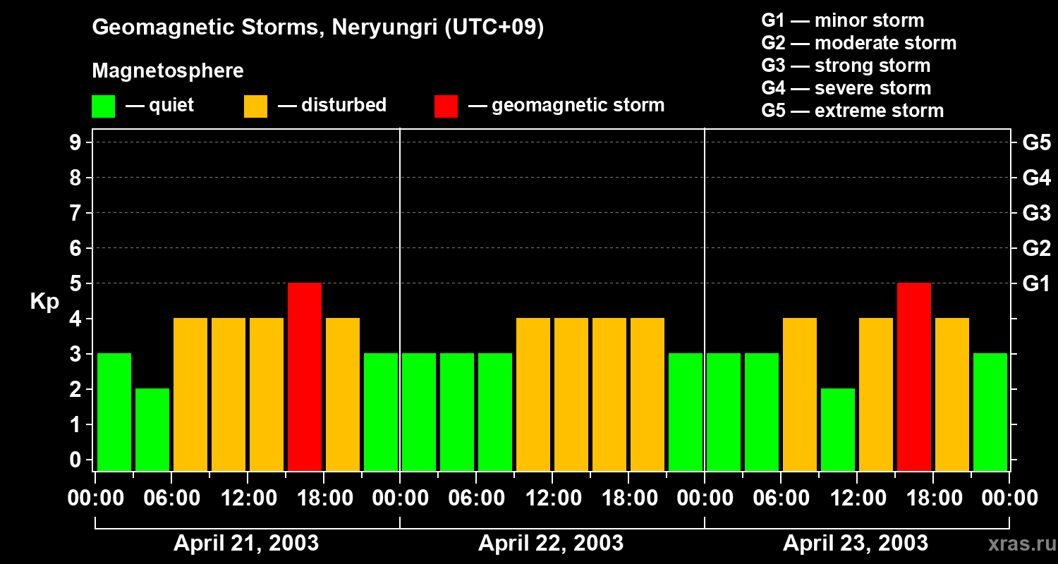 Geomagnetic storms in Neryungri — Apr 23, 2003
