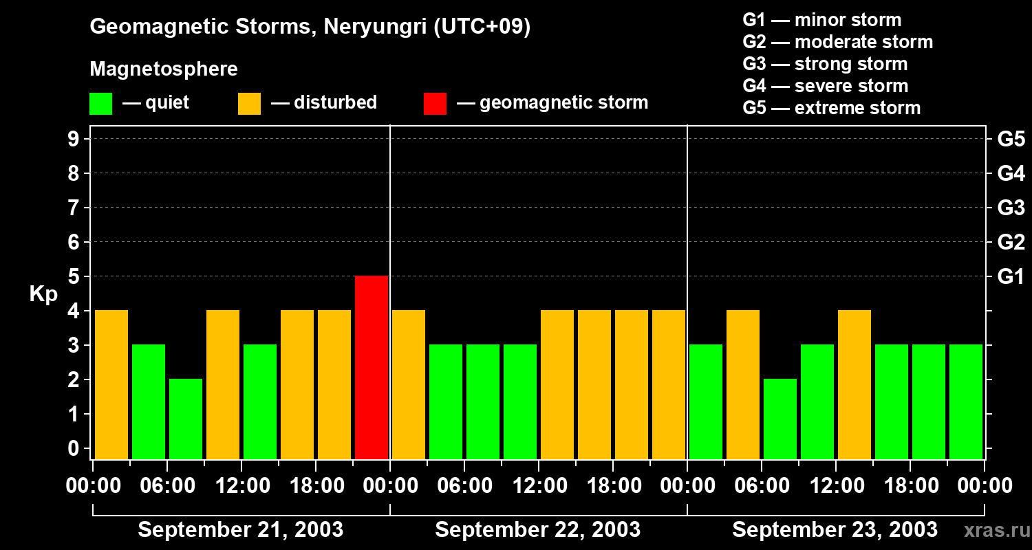 Geomagnetic storms in Neryungri — Sep 23, 2003