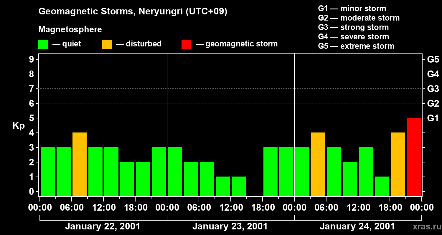 Geomagnetic storms in Neryungri — Jan 24, 2001