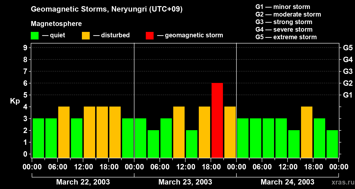 Geomagnetic storms in Neryungri — Mar 24, 2003