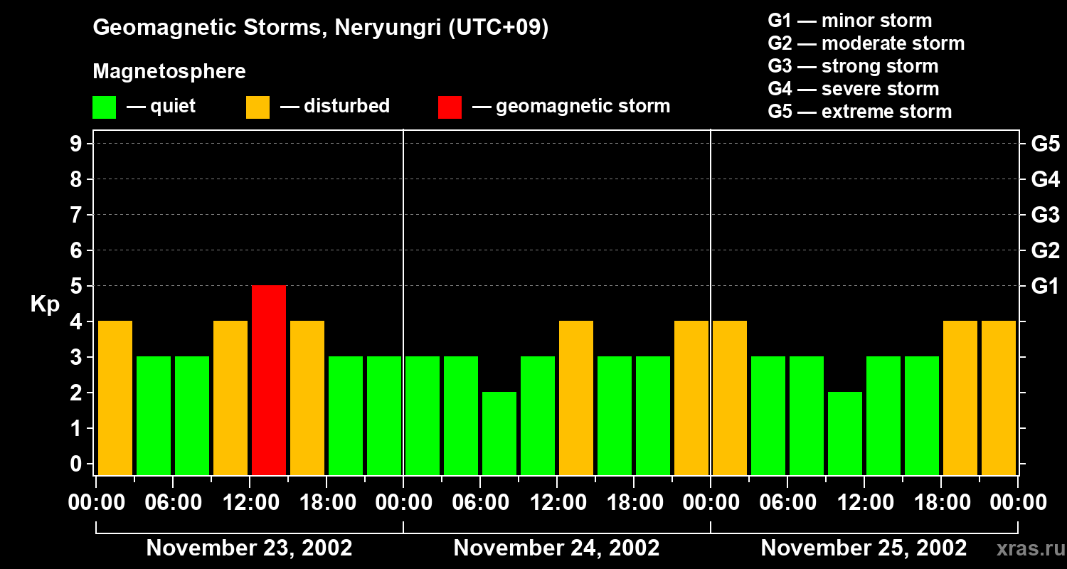 Geomagnetic storms in Neryungri — Nov 25, 2002