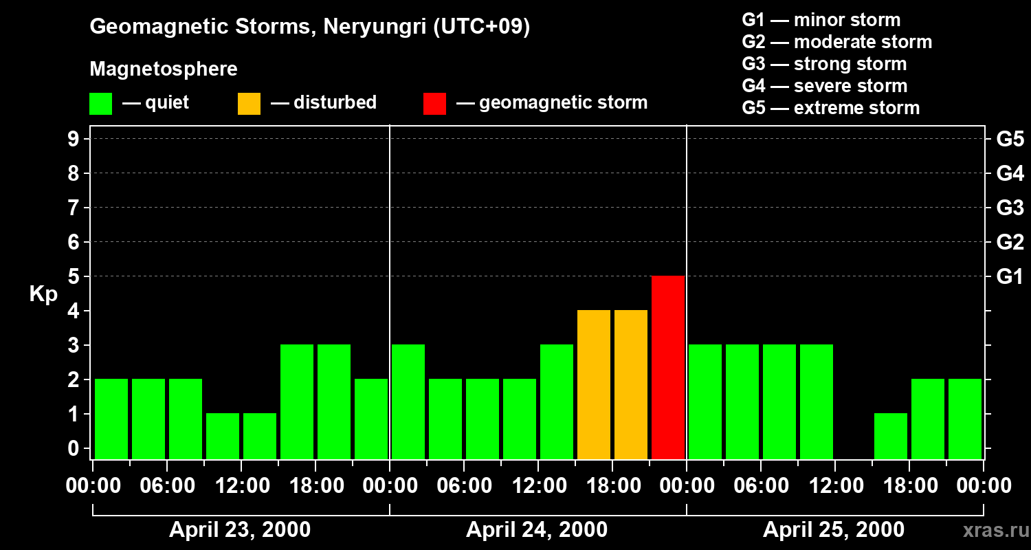 Geomagnetic storms in Neryungri — Apr 25, 2000