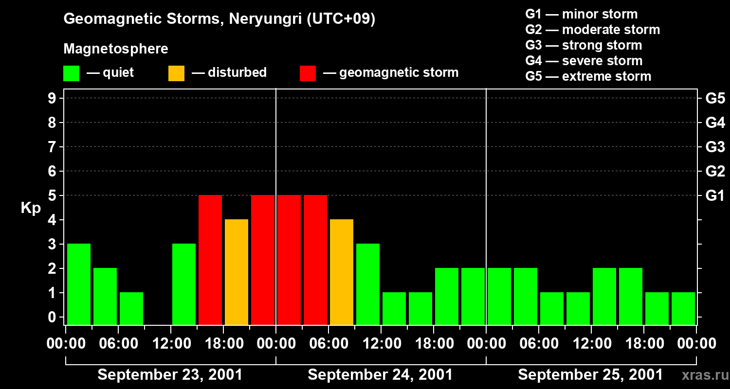 Geomagnetic storms in Neryungri — Sep 25, 2001