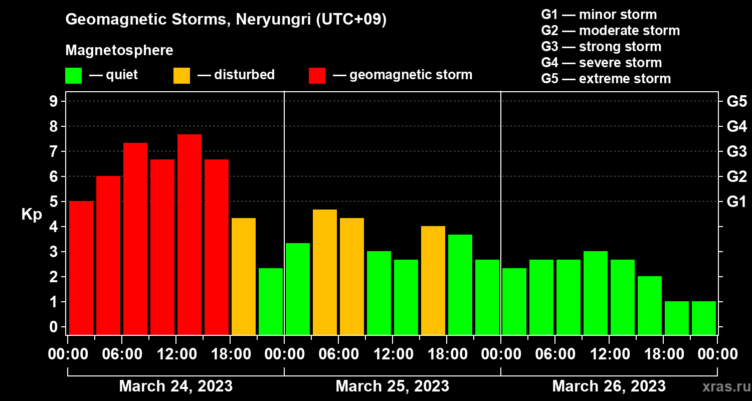 Geomagnetic storms in Neryungri — Mar 26, 2023