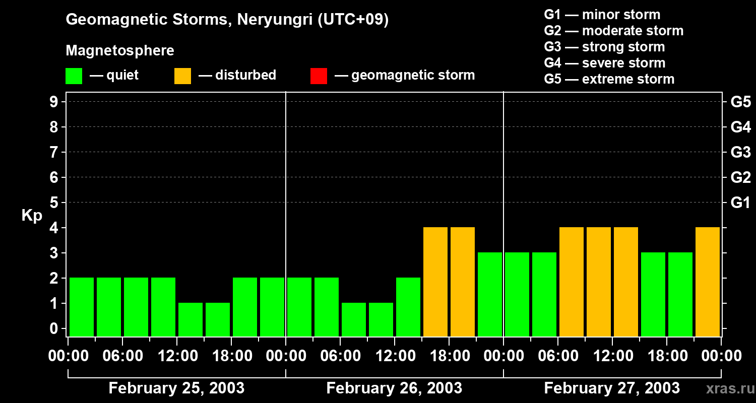 Geomagnetic storms in Neryungri — Feb 27, 2003