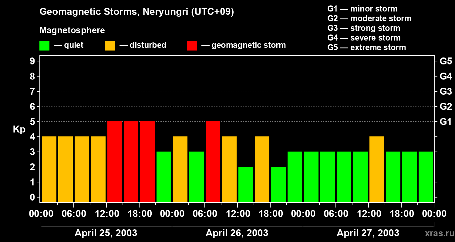 Geomagnetic storms in Neryungri — Apr 27, 2003