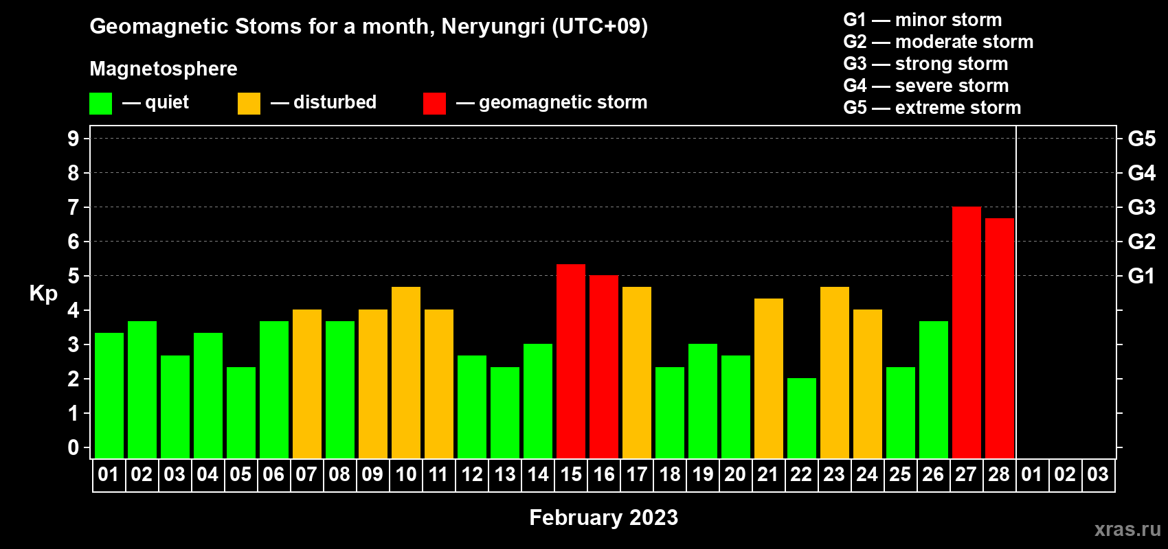 Geomagnetic storms in Neryungri — Feb 28, 2023