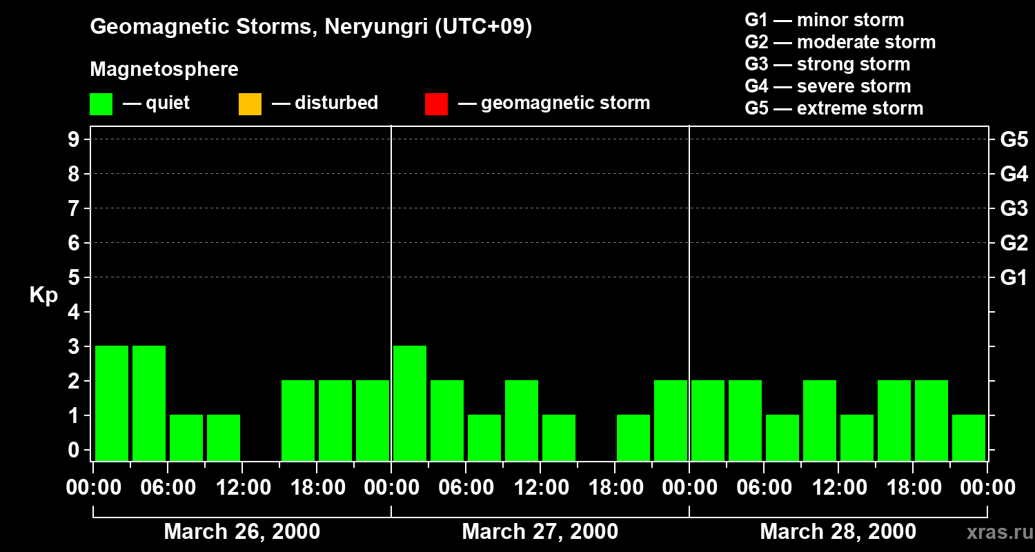 Geomagnetic storms in Neryungri — Mar 28, 2000