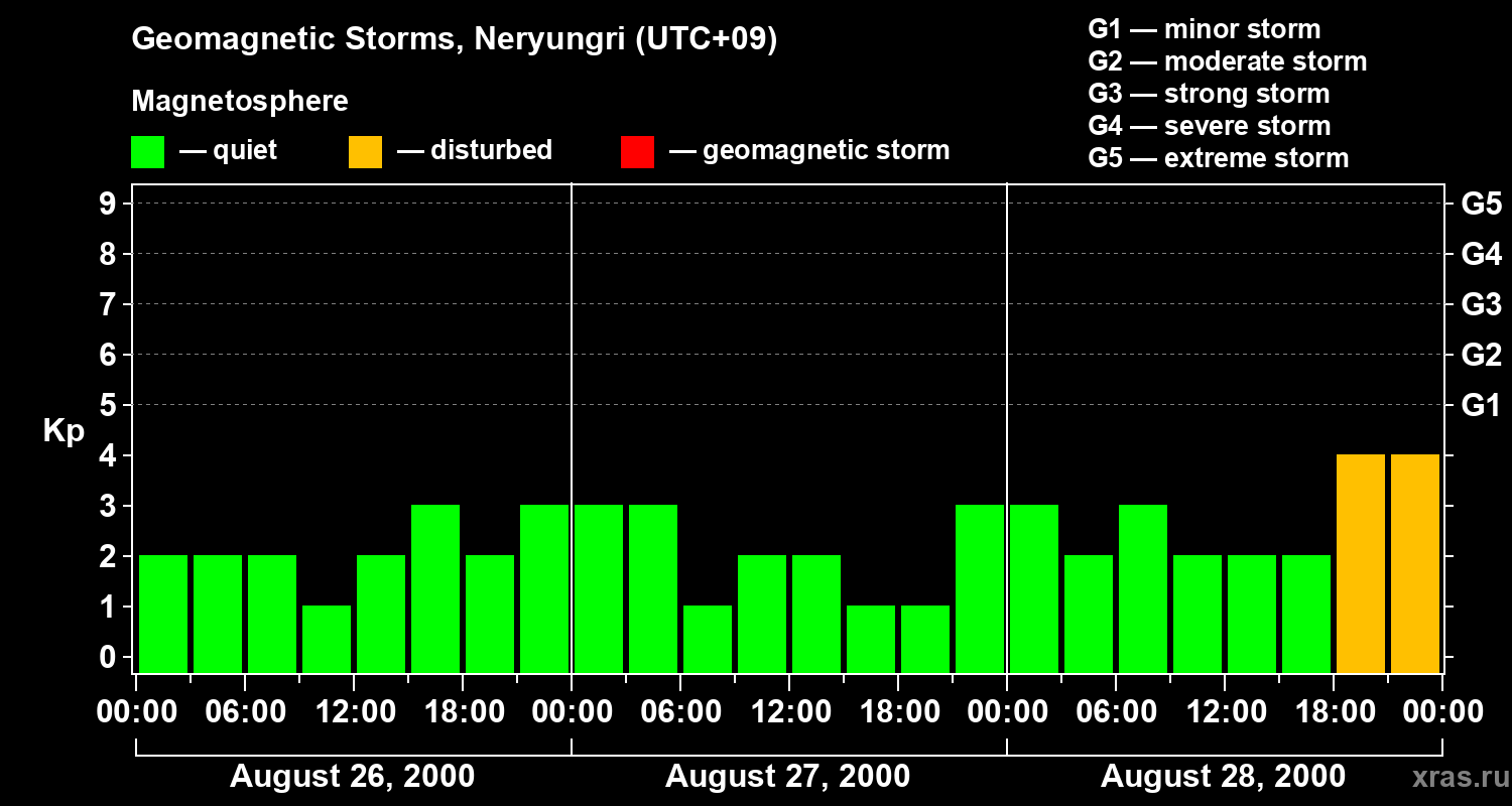 Geomagnetic storms in Neryungri — Aug 28, 2000